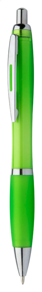 Műanyag golyóstoll áttetsző testtel, színben megegyező markolattal és fényes króm alkatrészekkel. Kék tollbetéttel szállítjuk.
