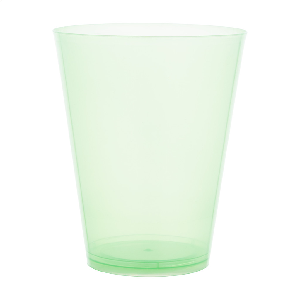 Többször használható rendezvénypohár átlátszó PP műanyagból, 500 ml. Nettó űrtartalom: 470 ml.
