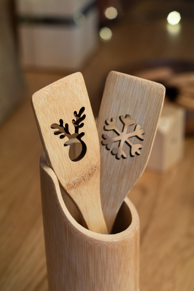 Karácsonyfa kivágású bambusz fakanál.
