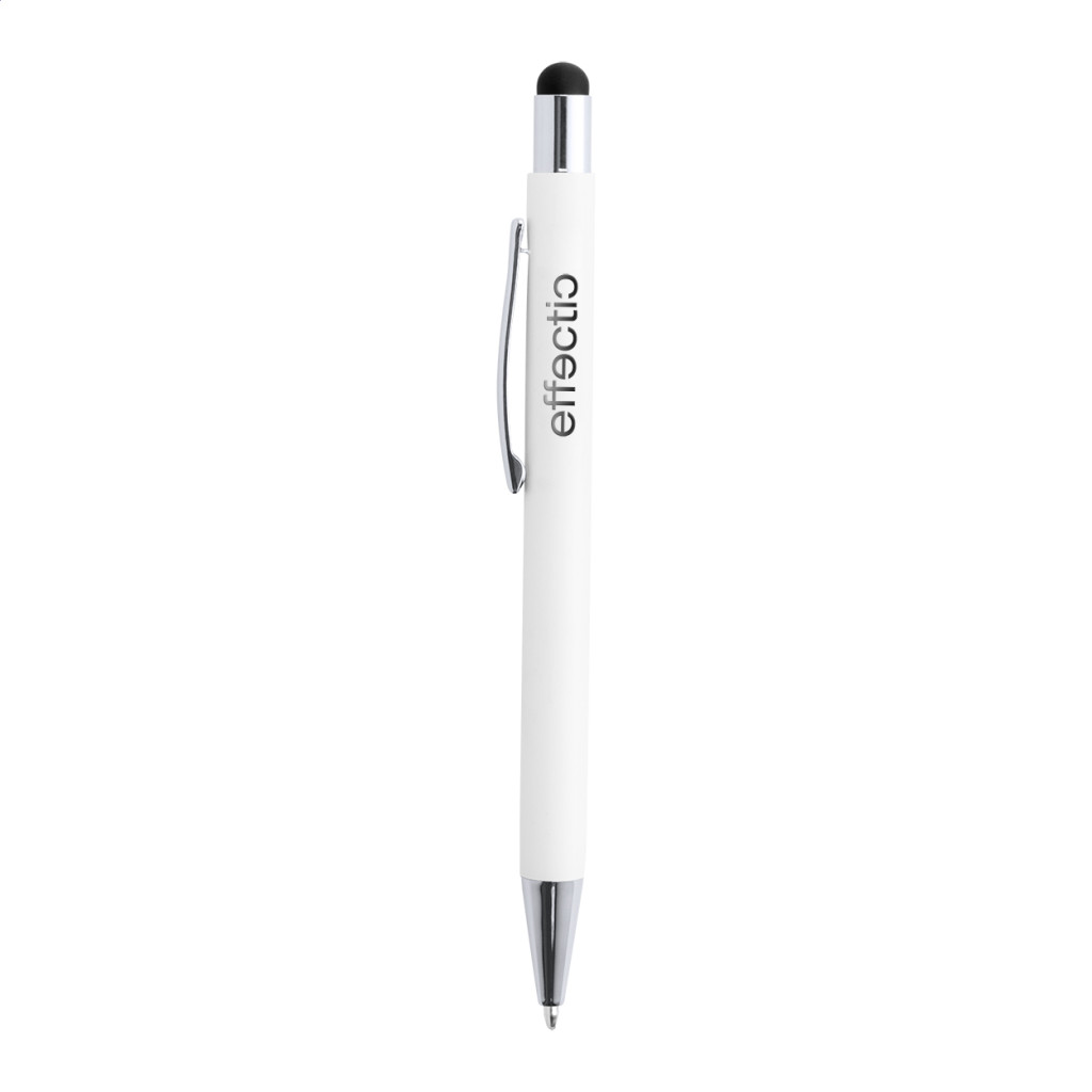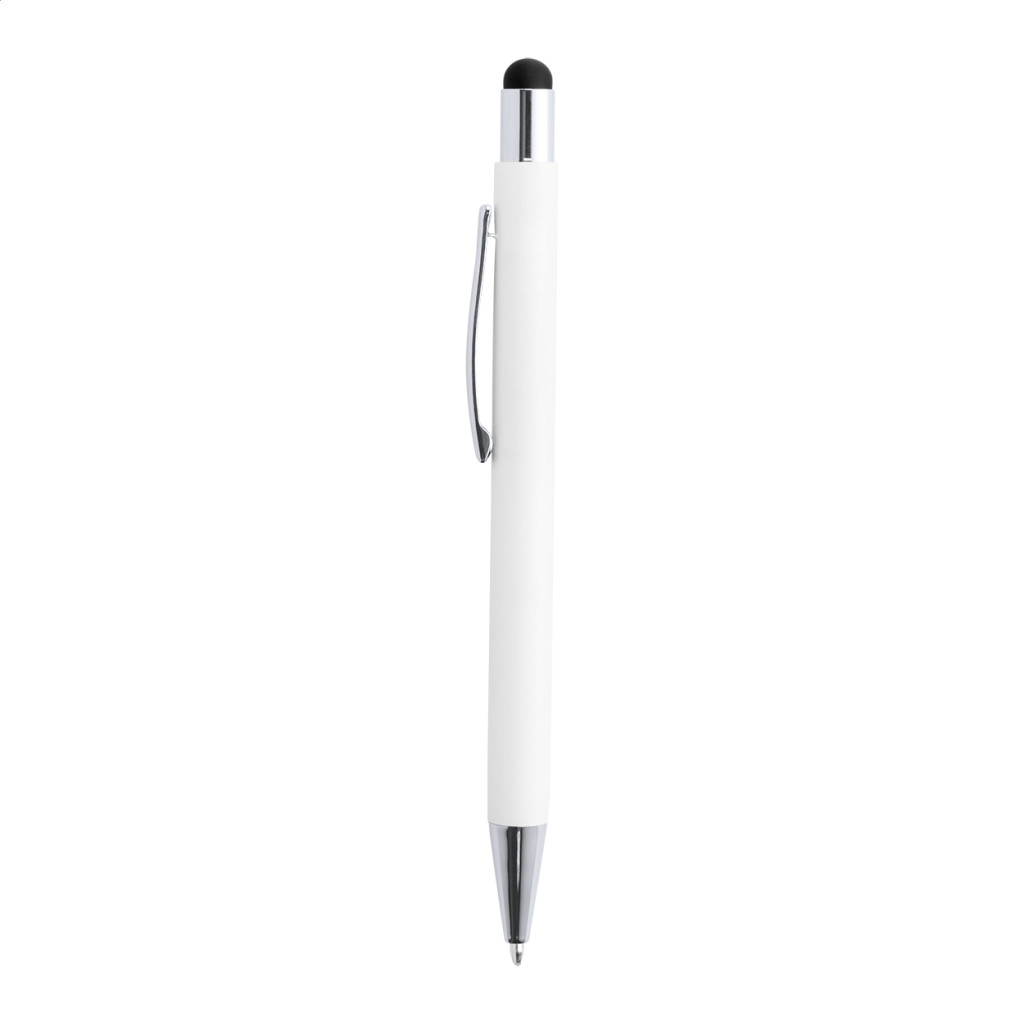 Alumínium golyóstoll érintőképernyős funkcióval, gumírozott felülettel. Különleges bevonattal, melynek gravírozása után az embléma az érintőképernyős véggel harmonizáló színben jelenik meg. Kék tollbetéttel szállítjuk.