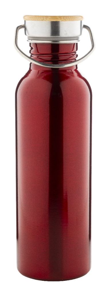 Színes, rozsdamentes acélból készült kulacs bambusz kupakkal, 800 ml.