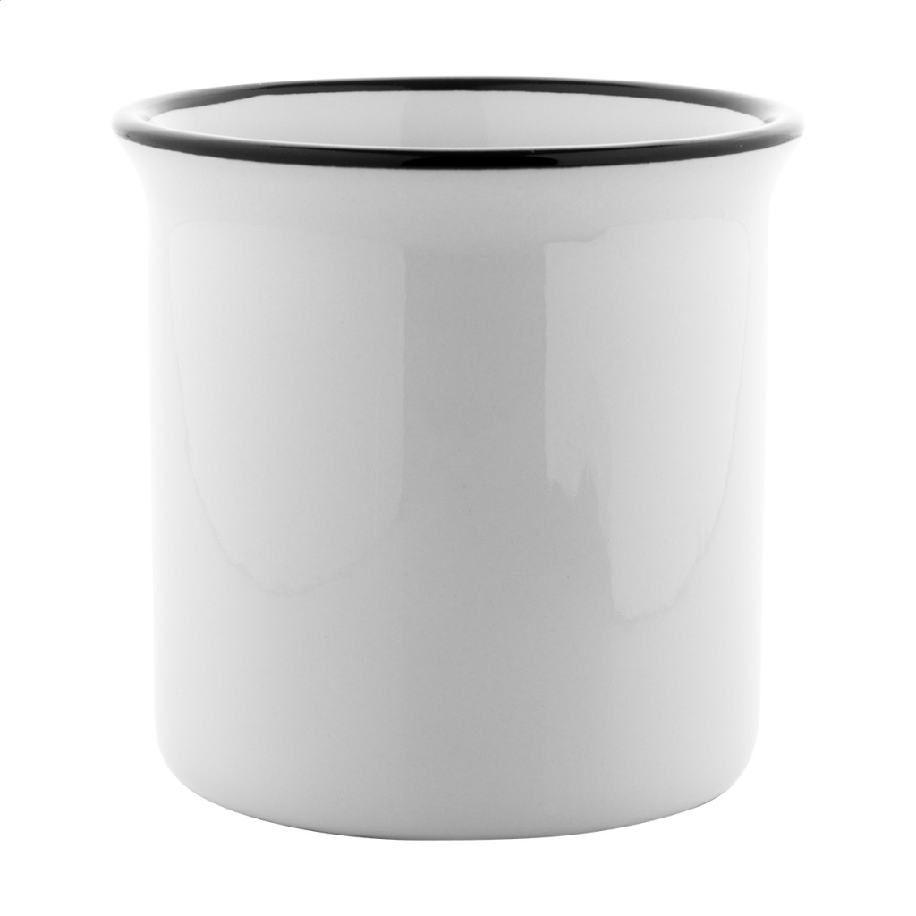 Vintage stílusú kerámia bögre, mely ideális szublimációs emblémázáshoz, színes peremmel, 300 ml. Díszdobozban szállítjuk.