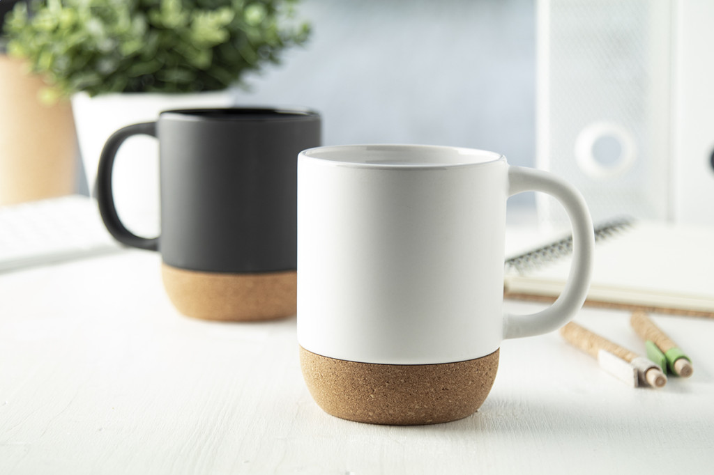 Kerámia bögre természetes parafa talppal, 420 ml. Kraft papír dobozban szállítjuk.