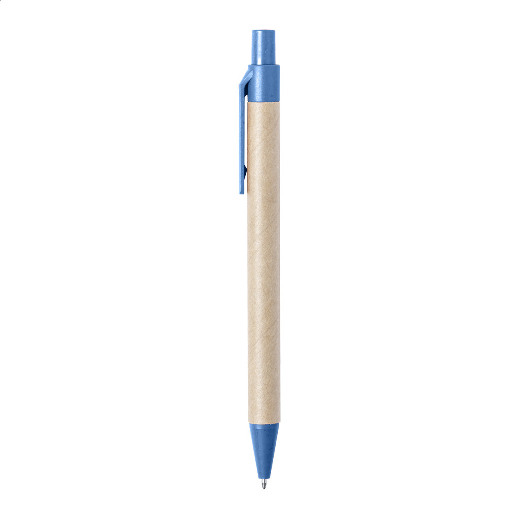 Újrahasznosított papírból készült golyóstoll környezetbarát búzaszalma műanyag részekkel. Kék tollbetéttel szállítjuk.