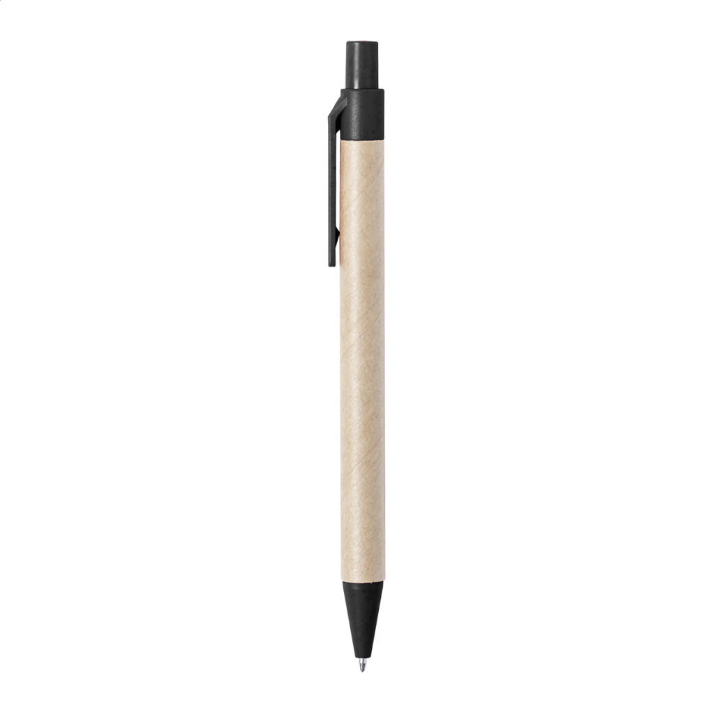 Újrahasznosított papírból készült golyóstoll környezetbarát búzaszalma műanyag részekkel. Kék tollbetéttel szállítjuk.