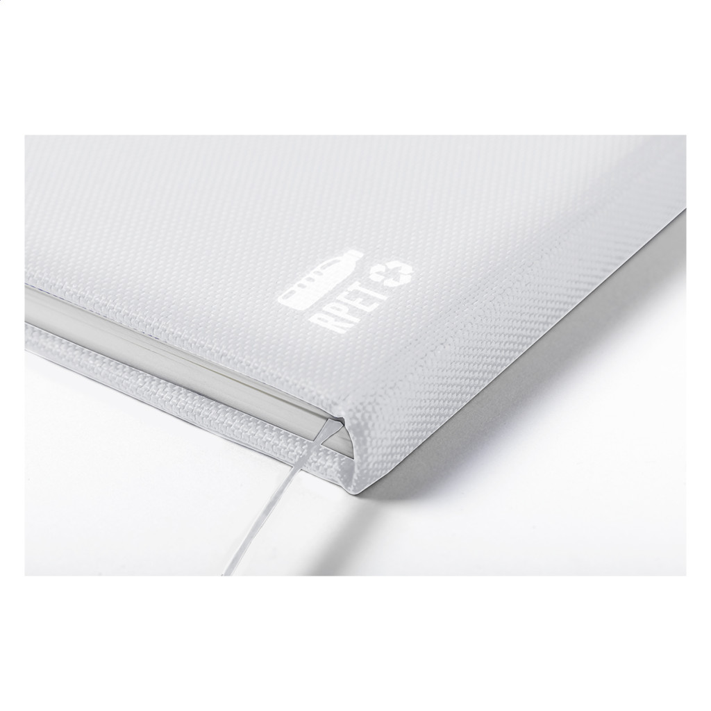 RPET poliészter borítású jegyzetfüzet 80 vonalas lappal, könyvjelzővel és gumipánttal. Méret: A5.