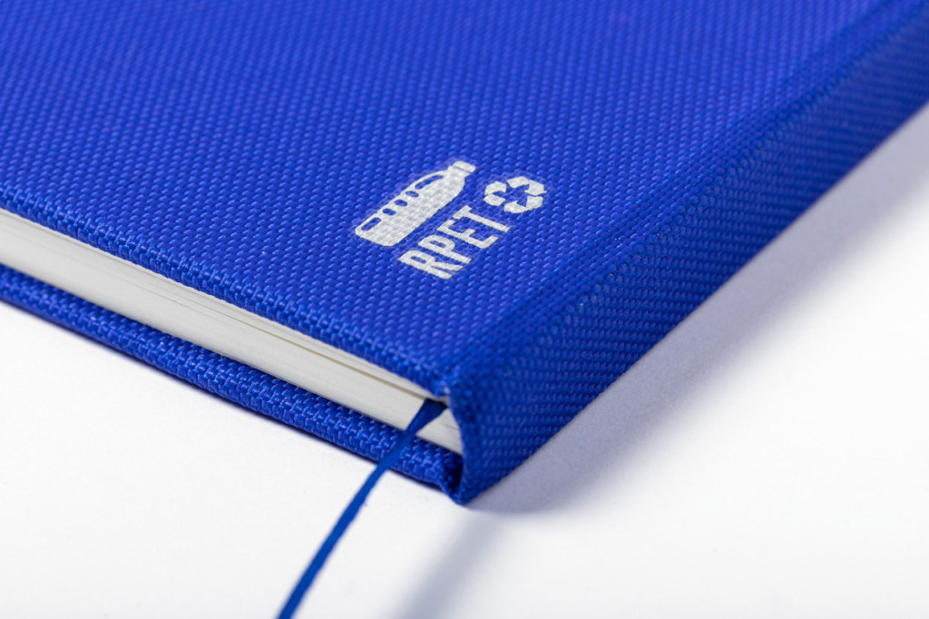 RPET poliészter borítású jegyzetfüzet 80 vonalas lappal, könyvjelzővel és gumipánttal. Méret: A5.