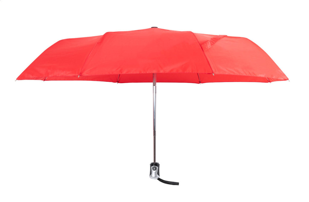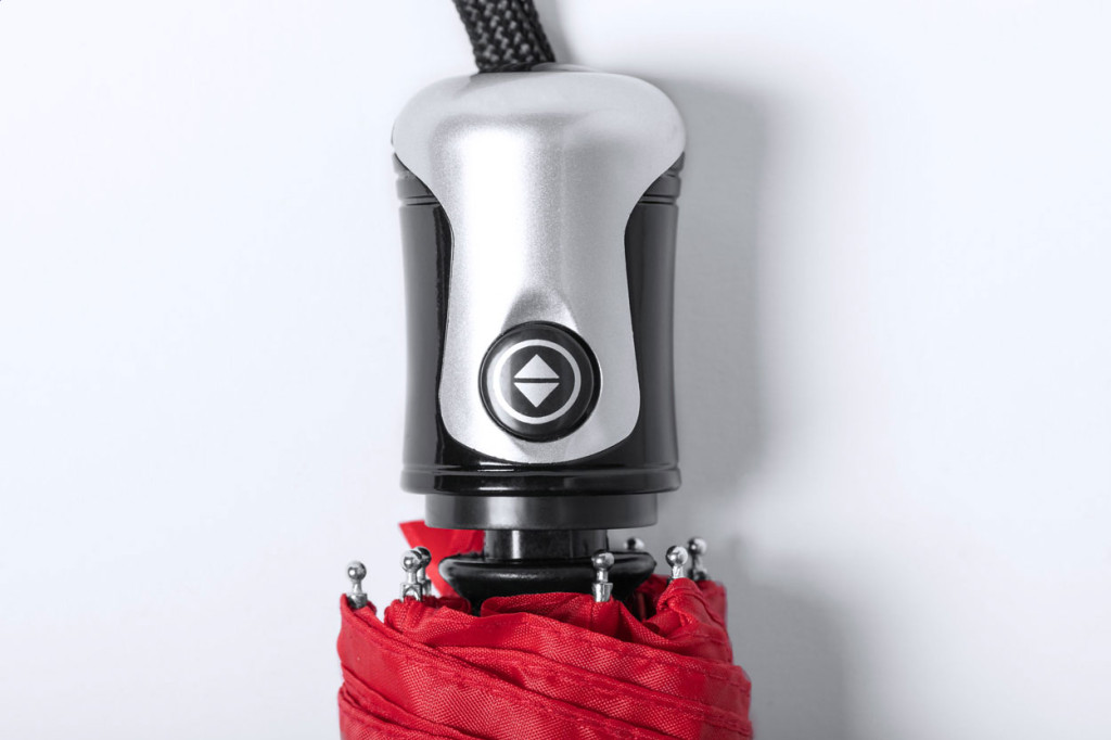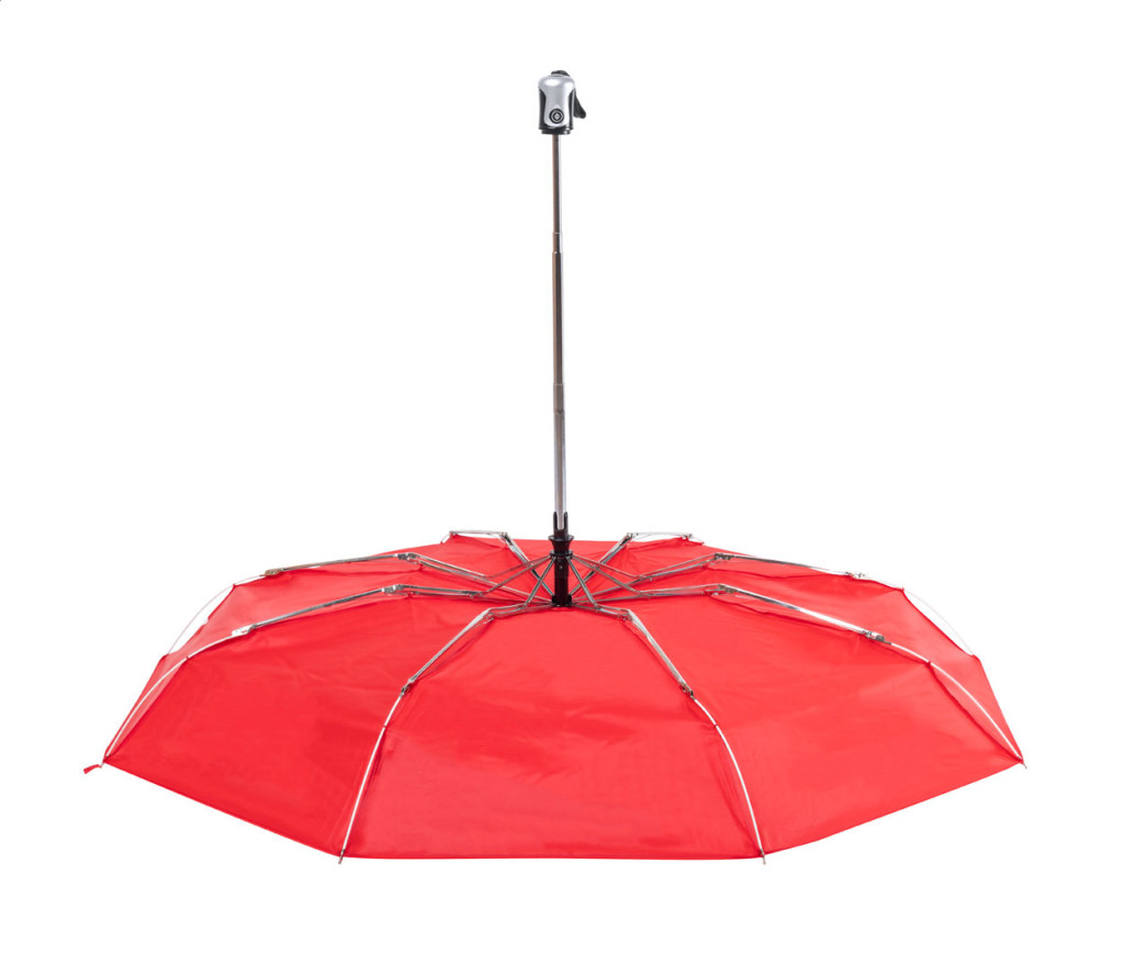 8 paneles szélálló, mindkét irányban automata esernyő fém vázzal, valamint fém és üvegszálas merevítőkkel. Csuklópánttal, műanyag fogóval és színével egyező tokkal. 190T poliészter.