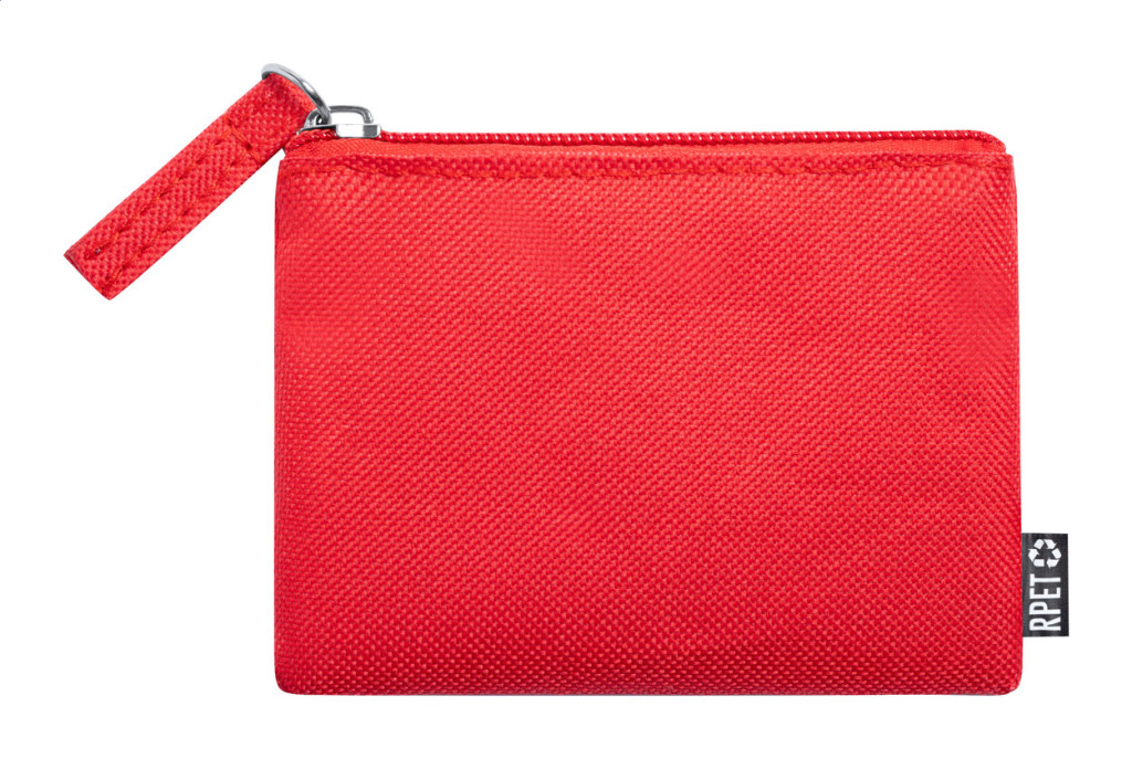 Cipzáras 600D RPET poliészter pénztárca megkülönböztető RPET címkével.