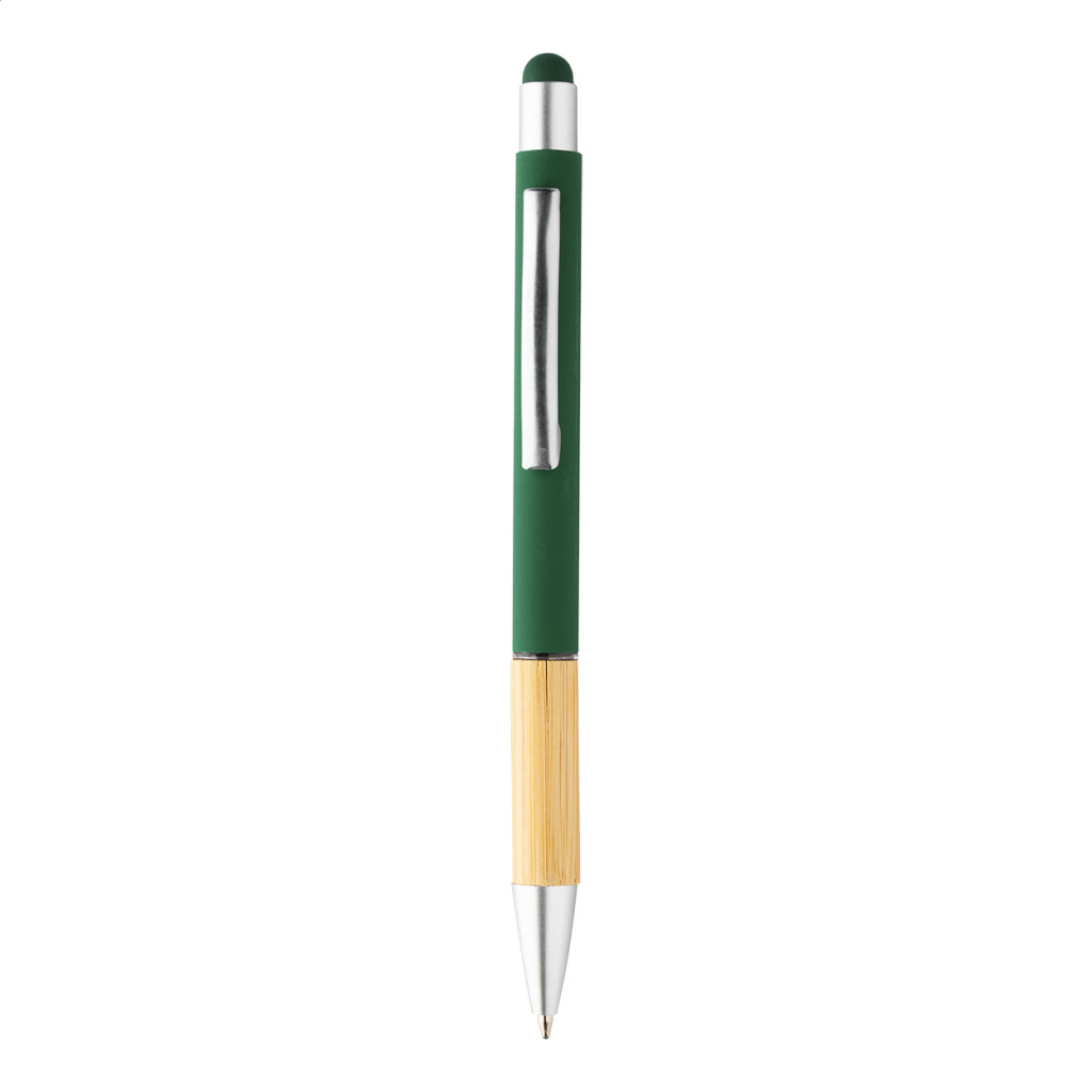 Alumínium, érintőképernyős golyóstoll bambusz markolattal és matt felülettel. Kék tollbetéttel szállítjuk.