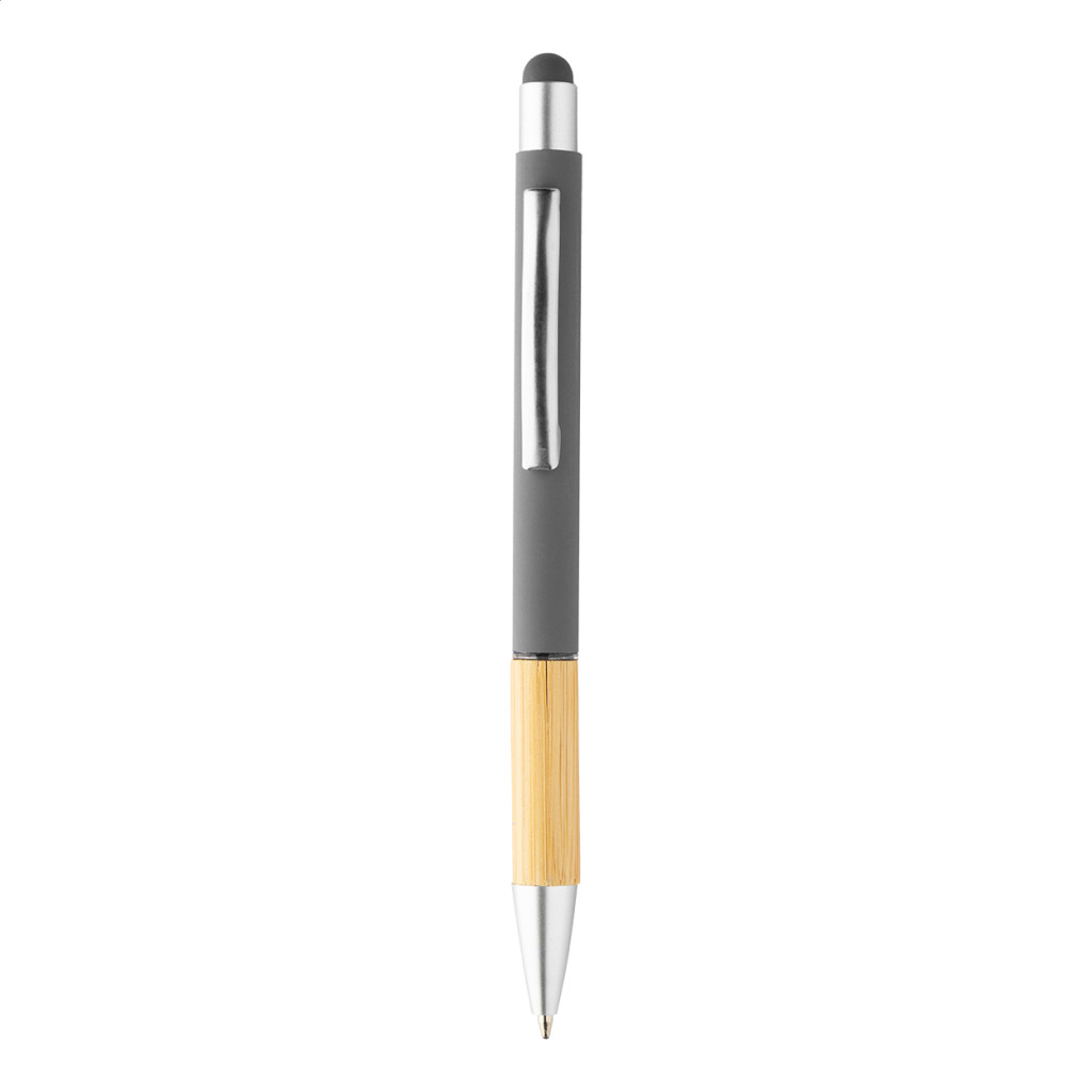 Alumínium, érintőképernyős golyóstoll bambusz markolattal és matt felülettel. Kék tollbetéttel szállítjuk.