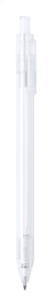 Áttetsző, RPET műanyag golyóstoll színes véggel. Kék tollbetéttel szállítjuk.