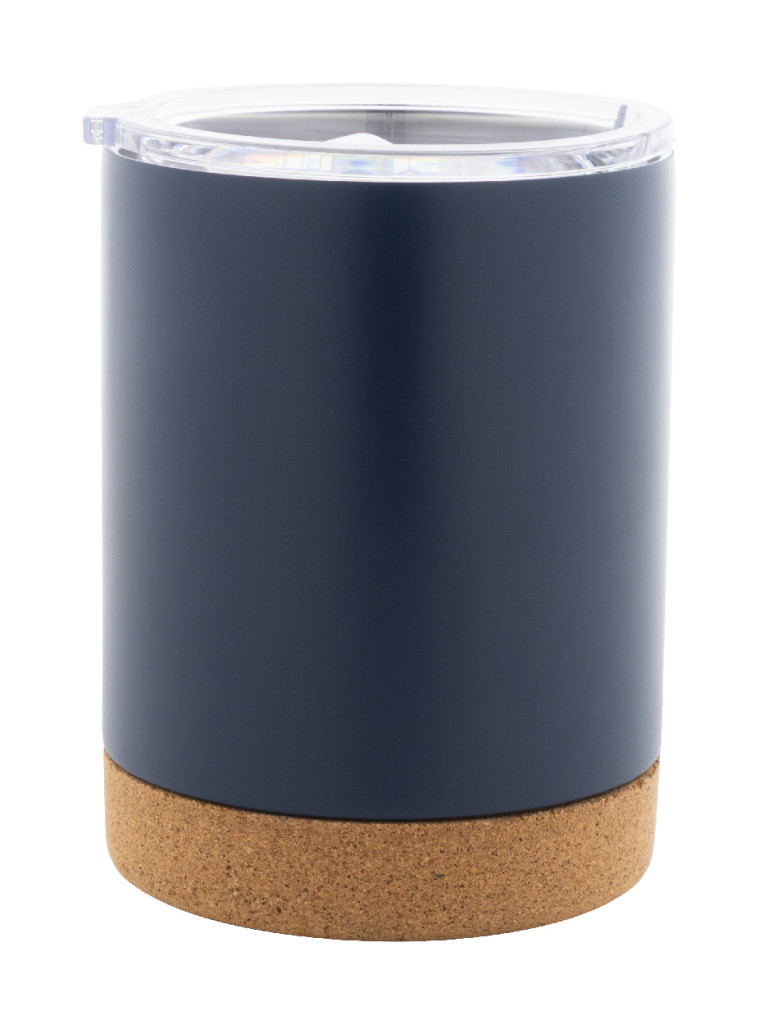 Duplafalú rozsdamentes acél thermo bögre ivófedéllel és természetes parafa talppal, 330 ml. Kraft papír dobozban szállítjuk.