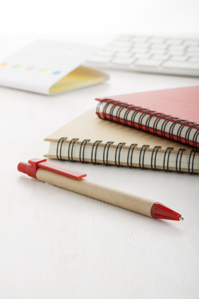 Újrahasznosított papírból készült golyóstoll műanyag kiegészítőkkel, fekete tollbetéttel szállítjuk.