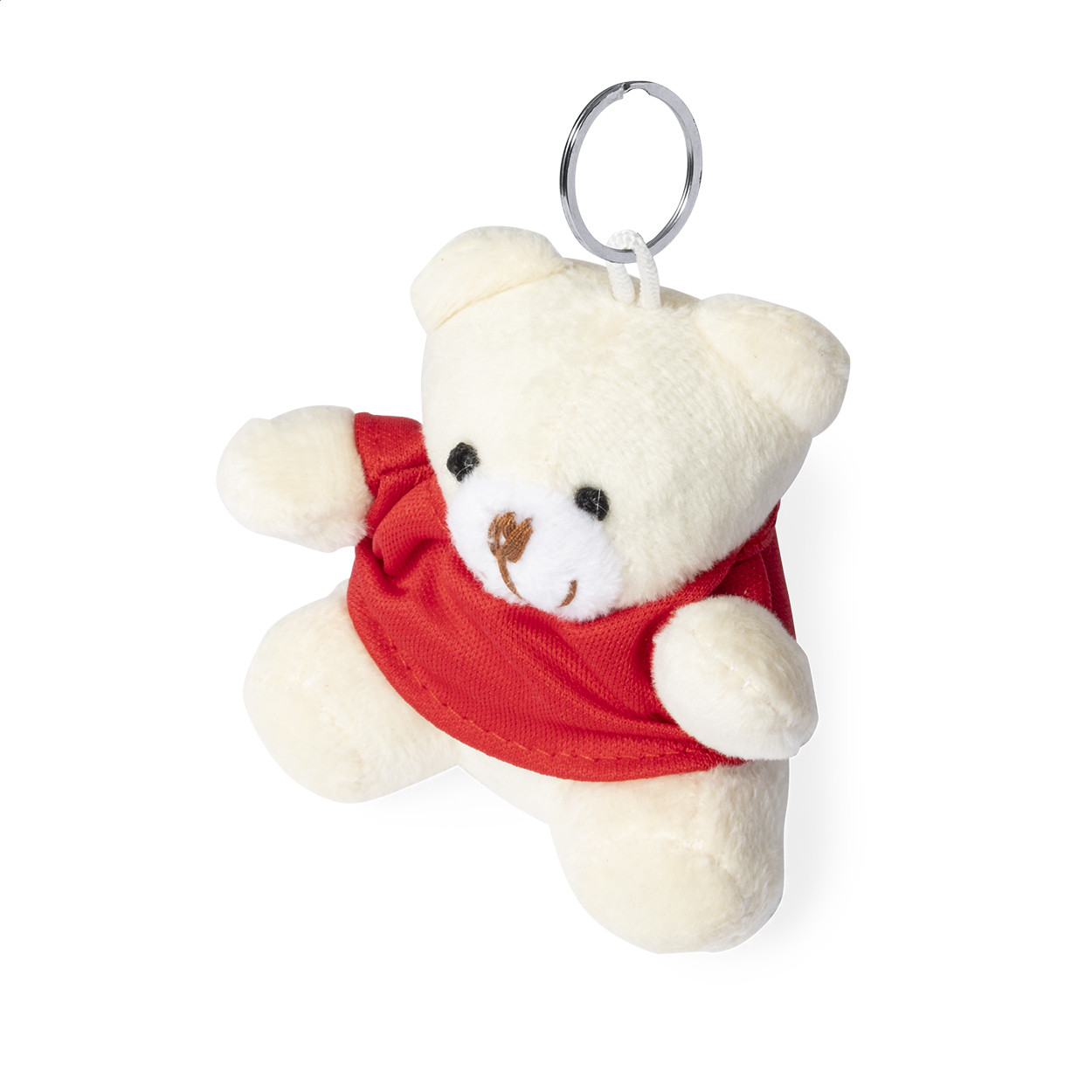 Plüss, kulcstartós maci emblémázható pólóval. Anyaga: poliészter.
