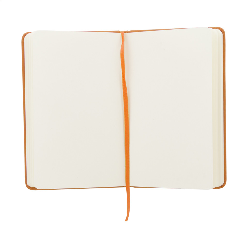 PU bőr borítású jegyzetfüzet 100 sima lappal, könyvjelzővel, gumipánttal zárható. A6 méretű.