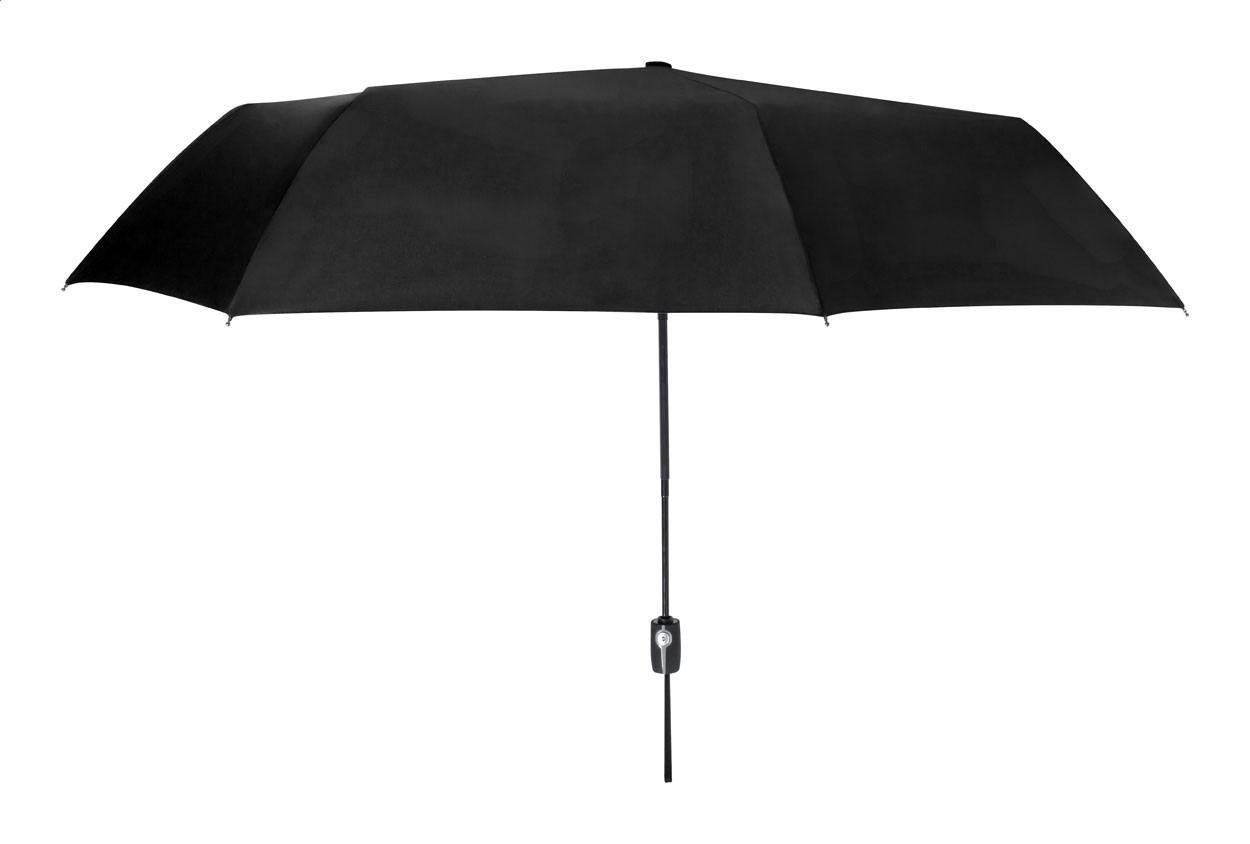 Automata (nyitás/zárás), szélálló, összecsukható esernyő 8 panellel, színben megegyező tasakban. Fém kerettel, üvegszálas vázzal és bordázattal és bambusz fogantyúval. 190T RPET pongee. Megkülönböztető RPET címkével.