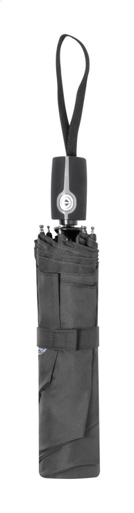 Automata (nyitás/zárás), szélálló, összecsukható esernyő 8 panellel, színben megegyező tasakban. Fém kerettel, üvegszálas vázzal és bordázattal és bambusz fogantyúval. 190T RPET pongee. Megkülönböztető RPET címkével.