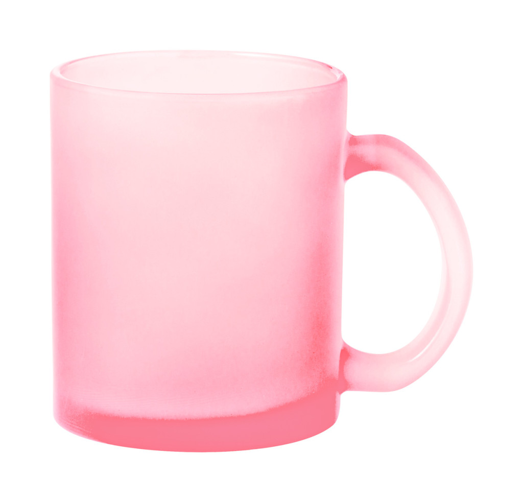 Színes, homokfúvott üveg bögre szublimációs nyomtatáshoz, 350 ml. Kraft papír dobozban.