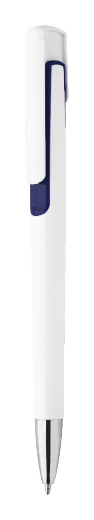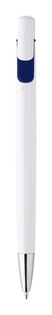 Műanyag golyóstoll színes dekorációval és króm véggel. Kék tollbetéttel szállítjuk.