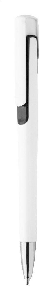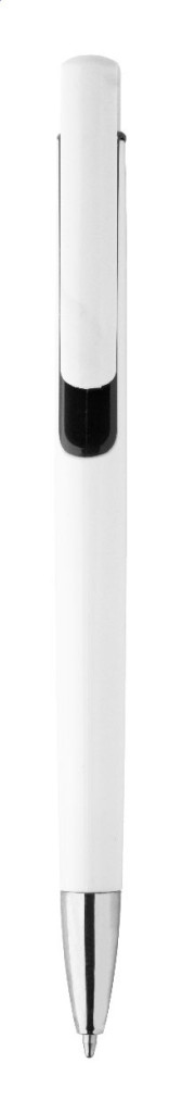 Műanyag golyóstoll színes dekorációval és króm véggel. Kék tollbetéttel szállítjuk.