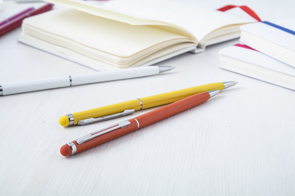 Alumínium érintőképernyős golyóstoll, színes testtel és megegyező színű érintőgombbal. Kék tollbetéttel szállítjuk.
