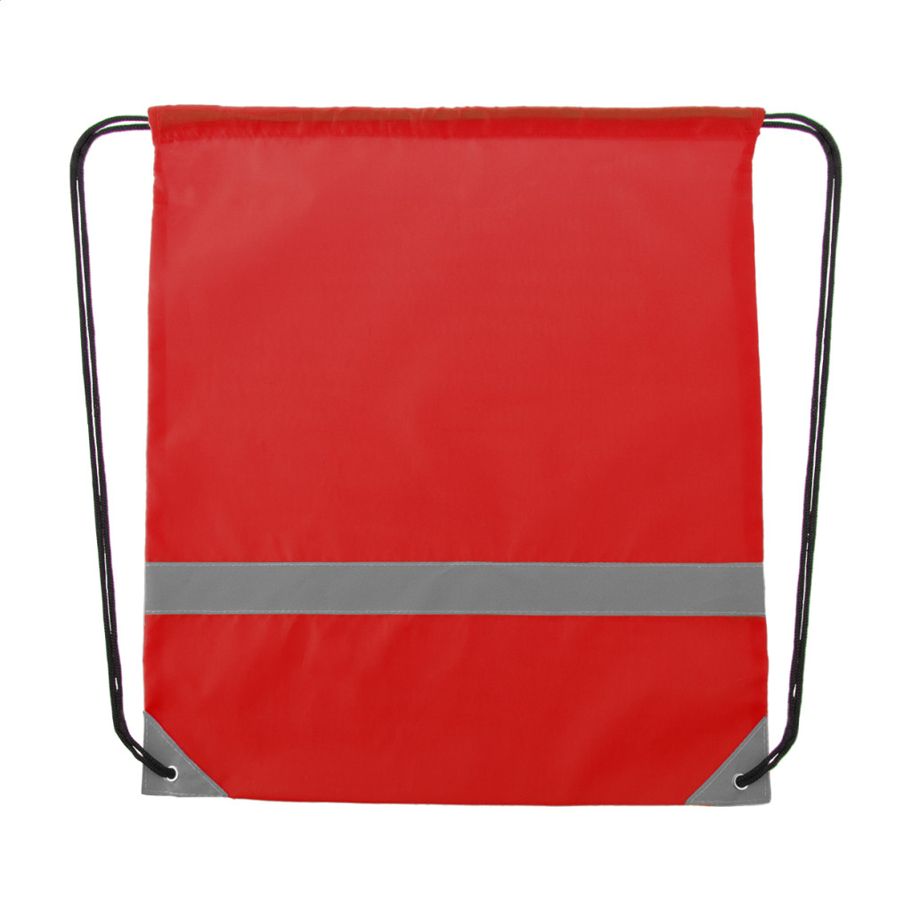 Fényvisszaverő hátizsák zsinór vállpánttal, az elején fényvisszaverő csíkkal. Anyaga: 190T poliészter. A termék kizárólag promóciós célra alkalmas, nem minősül egyéni védőfelszerelésnek.