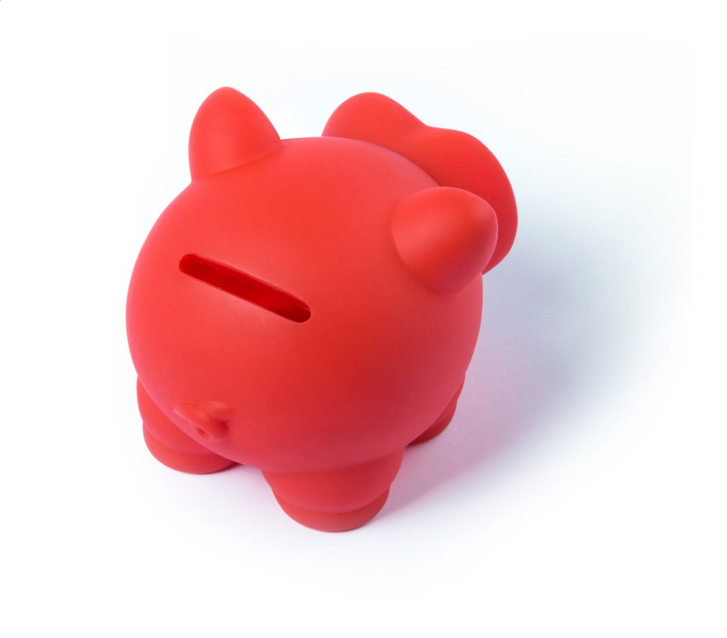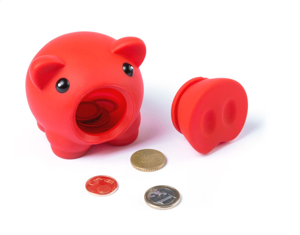 Műanyag malacpersely, levehető orral az aprópénz eltávolításához.