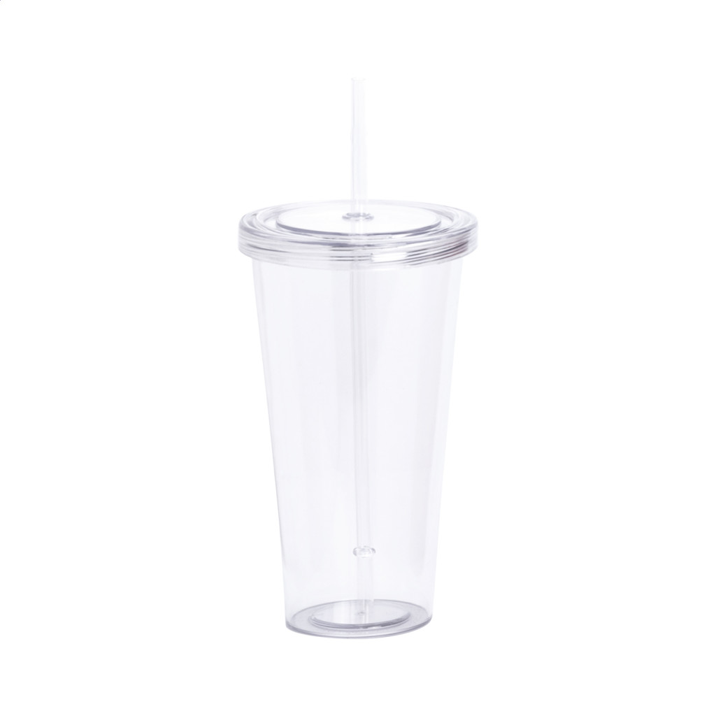 Átlátszó, színes műanyag pohár, megegyező színű fedéllel és szívószállal, 750 ml.