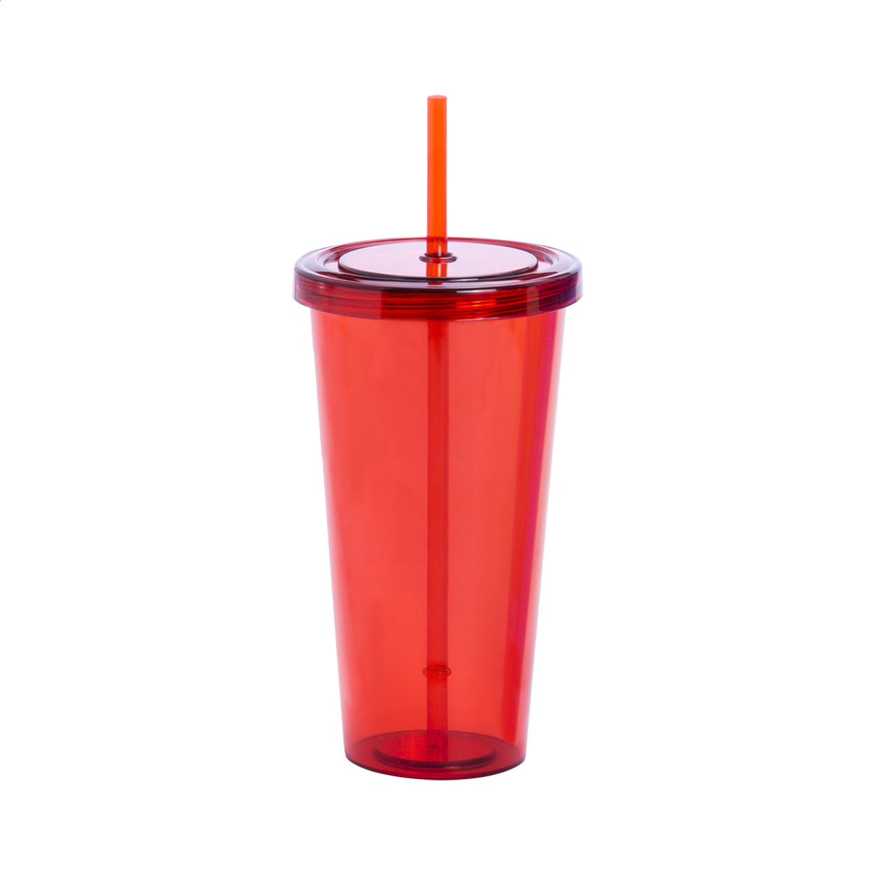 Átlátszó, színes műanyag pohár, megegyező színű fedéllel és szívószállal, 750 ml.