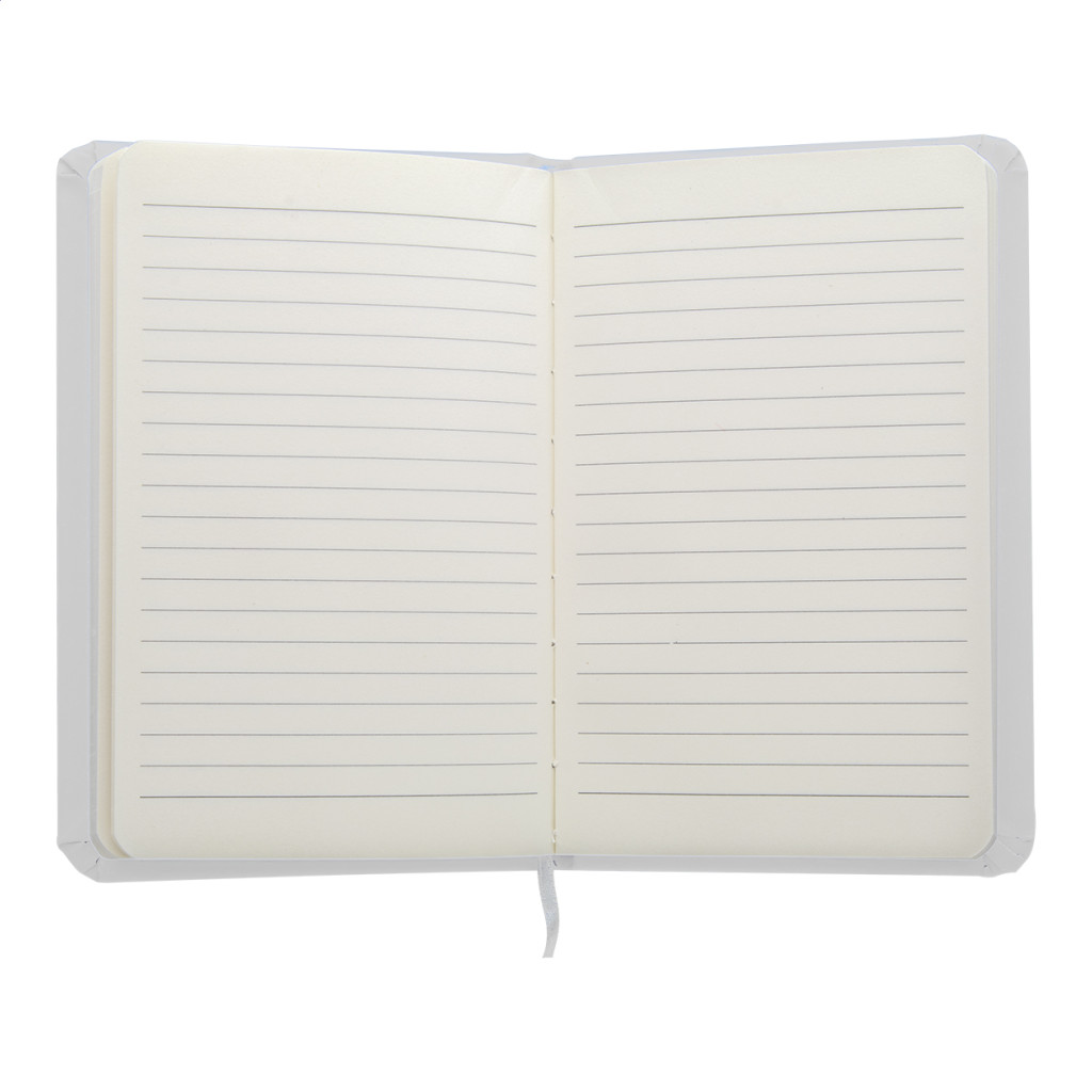 PU bőr borítású jegyzetfüzet 100 vonalas lappal, könyvjelzővel, gumipánttal zárható. A6 méretű.