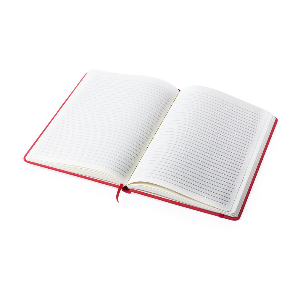 PU bőr borítású jegyzetfüzet 100 vonalas lappal, könyvjelzővel, gumipánttal zárható.