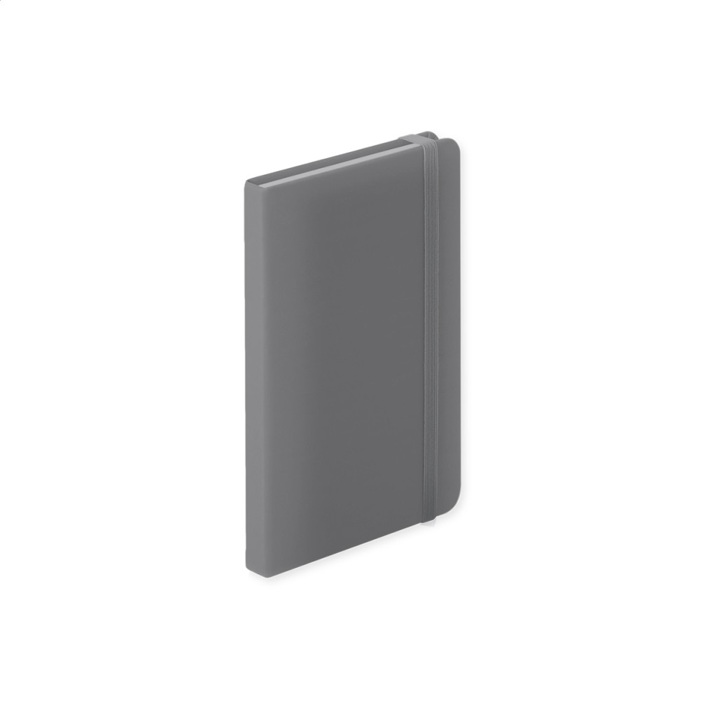 PU bőr borítású jegyzetfüzet 100 vonalas lappal, könyvjelzővel, gumipánttal zárható.