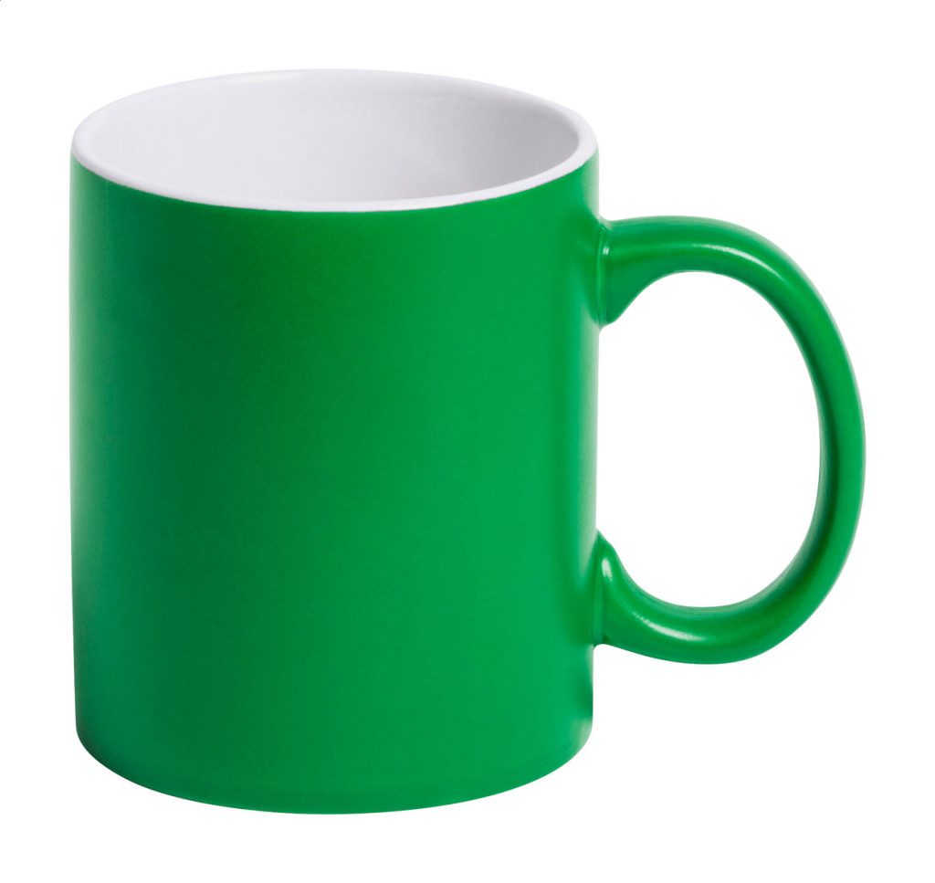 Színes kerámia bögre, fehér belső résszel, 350 ml. A gravírozott logó a bögre belsejével megegyező színű. Dobozban szállítjuk.