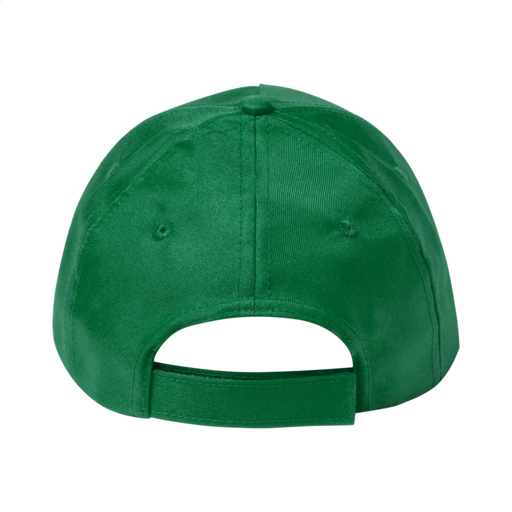 Tépőzárral szabályozható 5 paneles gyerek baseballsapka. Anyaga: poliészter és mikroszál.