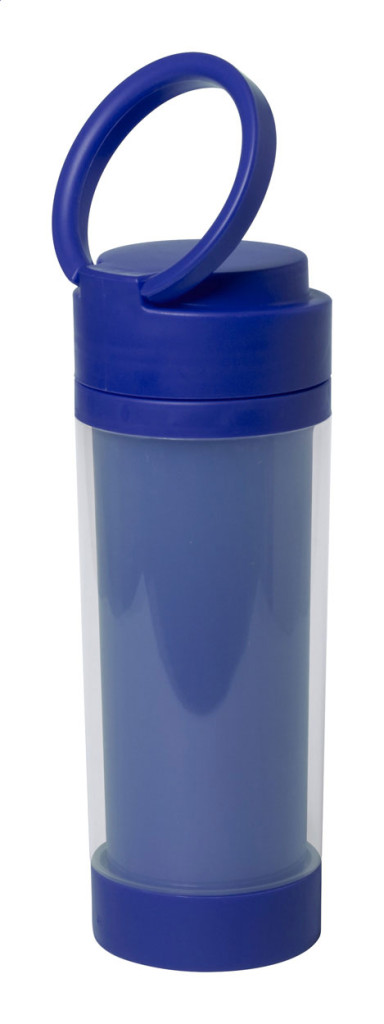 Műanyag sportkulacs, kupakján fogantyúval, talpán kihúzható mobiltartóval. Díszdobozban szállítjuk. 390 ml. Nem alkalmas szénsavas italok tárolására.
