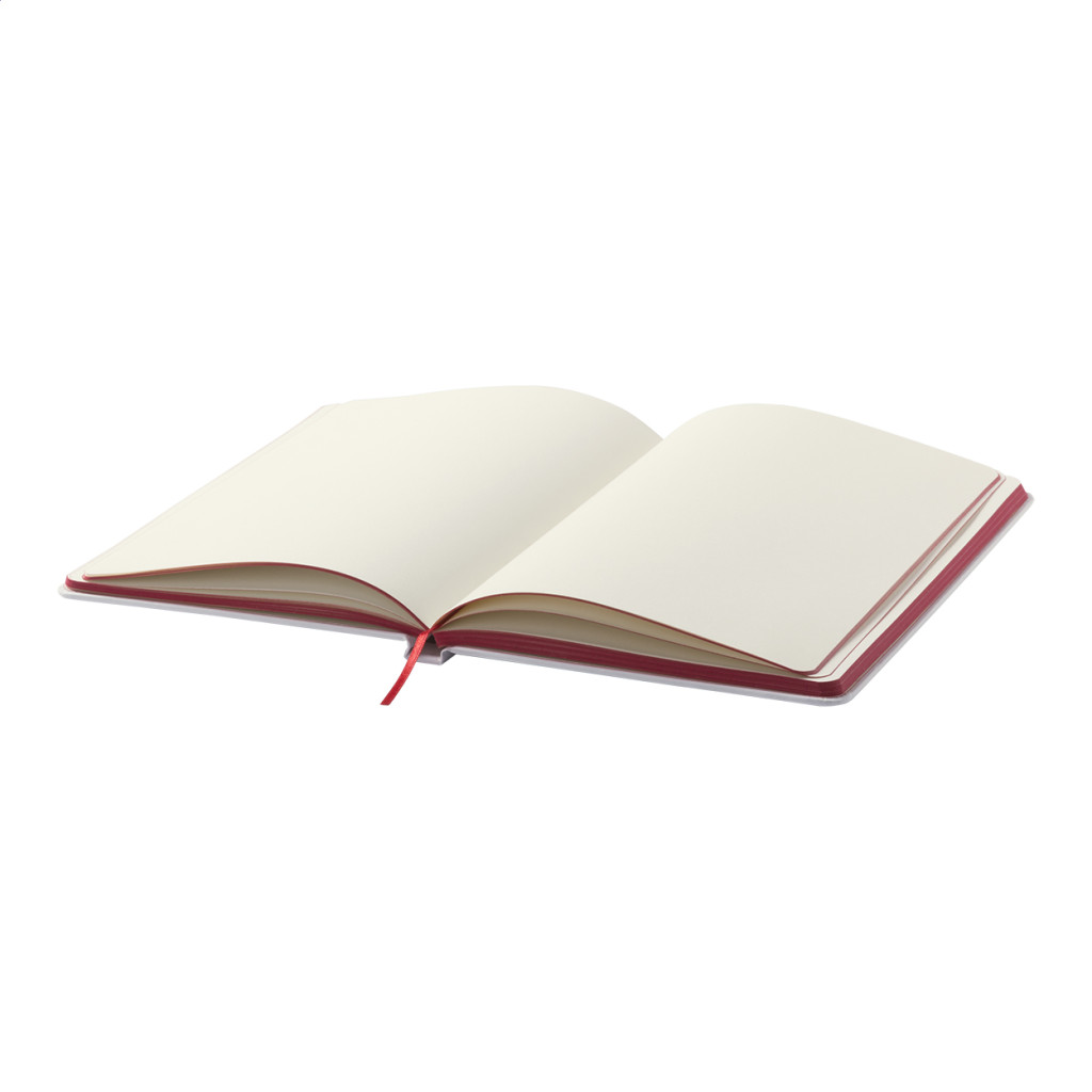Papír borítású jegyzetfüzet 100 sima lappal, színezett lapélekkel és azonos színű könyvjelzővel és gumipánttal, A5.