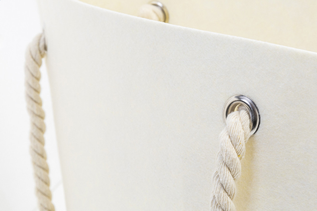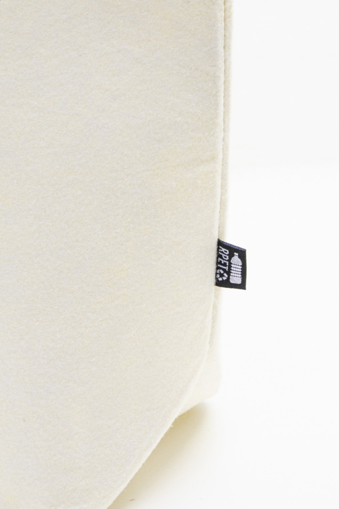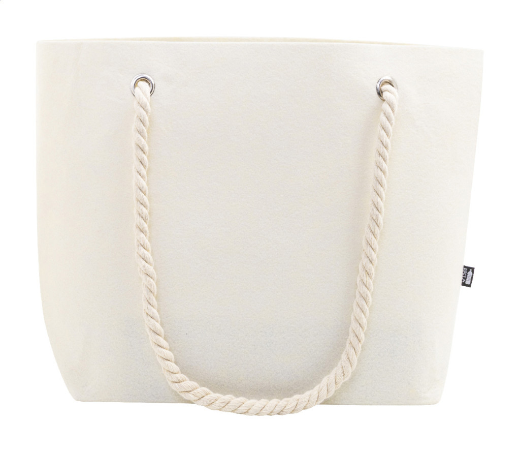 RPET filc strand- vagy bevásárlótáska pamut zsinóros fogantyúkkal és alsó betoldással. Megkülönböztető RPET címkével.