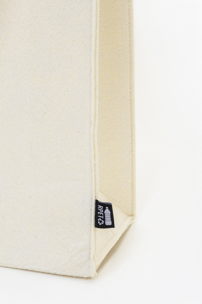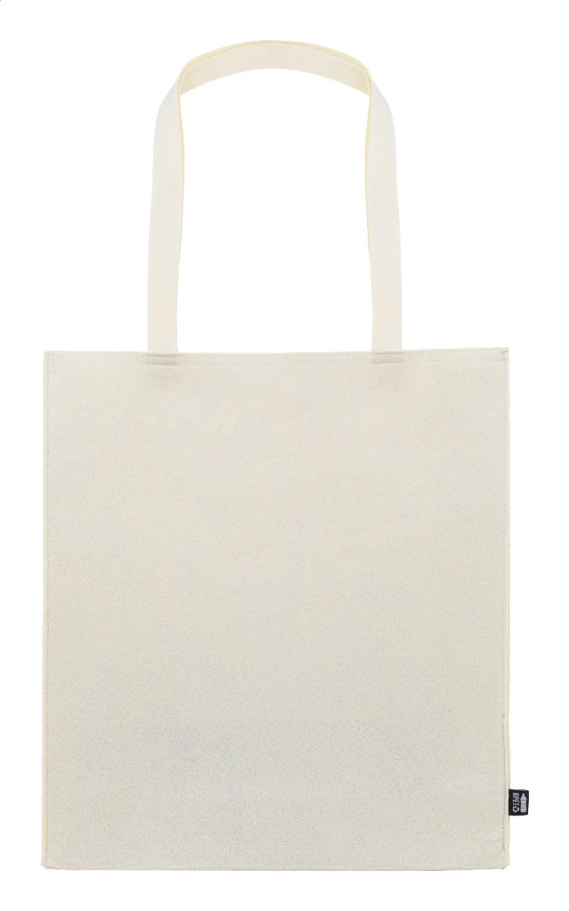 RPET filc bevásárlótáska betoldással és hosszú fülekkel. Megkülönböztető RPET címkével.