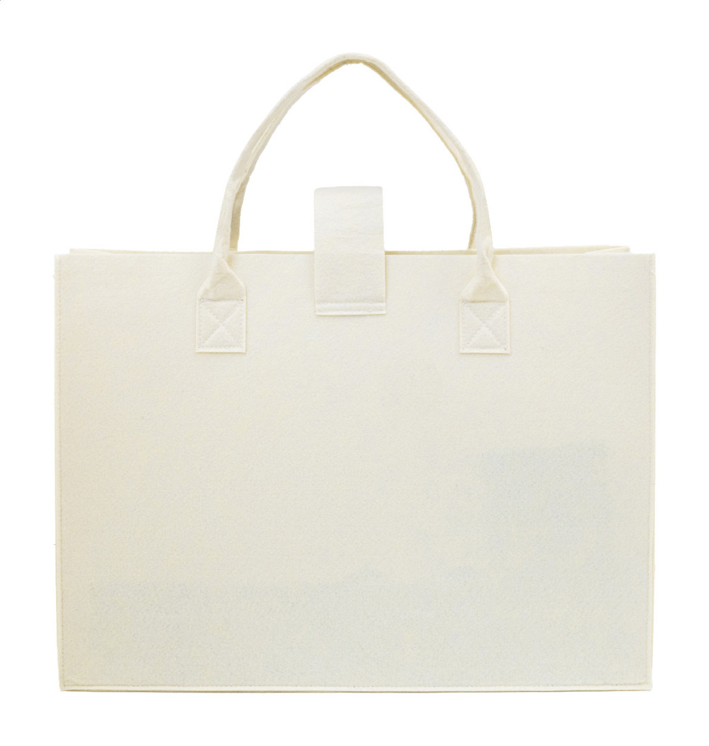 RPET filc bevásárlótáska betoldással, gombos záródással és rövid fülekkel. Megkülönböztető RPET címkével.