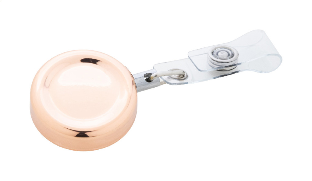 Exkluzív fém kártyatartó magasfényű fémes felülettel. Patentzárral, teleszkópos zsinórral és fém klipsszel.