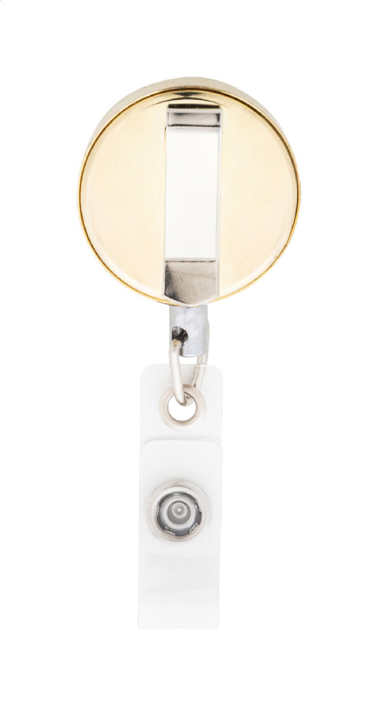 Exkluzív fém kártyatartó magasfényű fémes felülettel. Patentzárral, teleszkópos zsinórral és fém klipsszel.