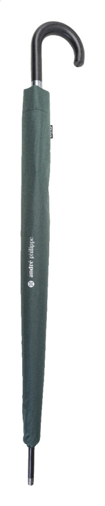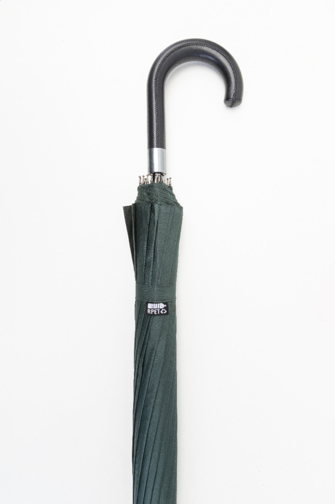Nagy méretű, automata, szélálló esernyő 16 panellel, PU bőr fogantyúval, fém vázzal és üvegszálas bordákkal. 190T RPET pongee. Megkülönböztető RPET címkével. Márkás hordtáskában. André Philippe márkatermék.