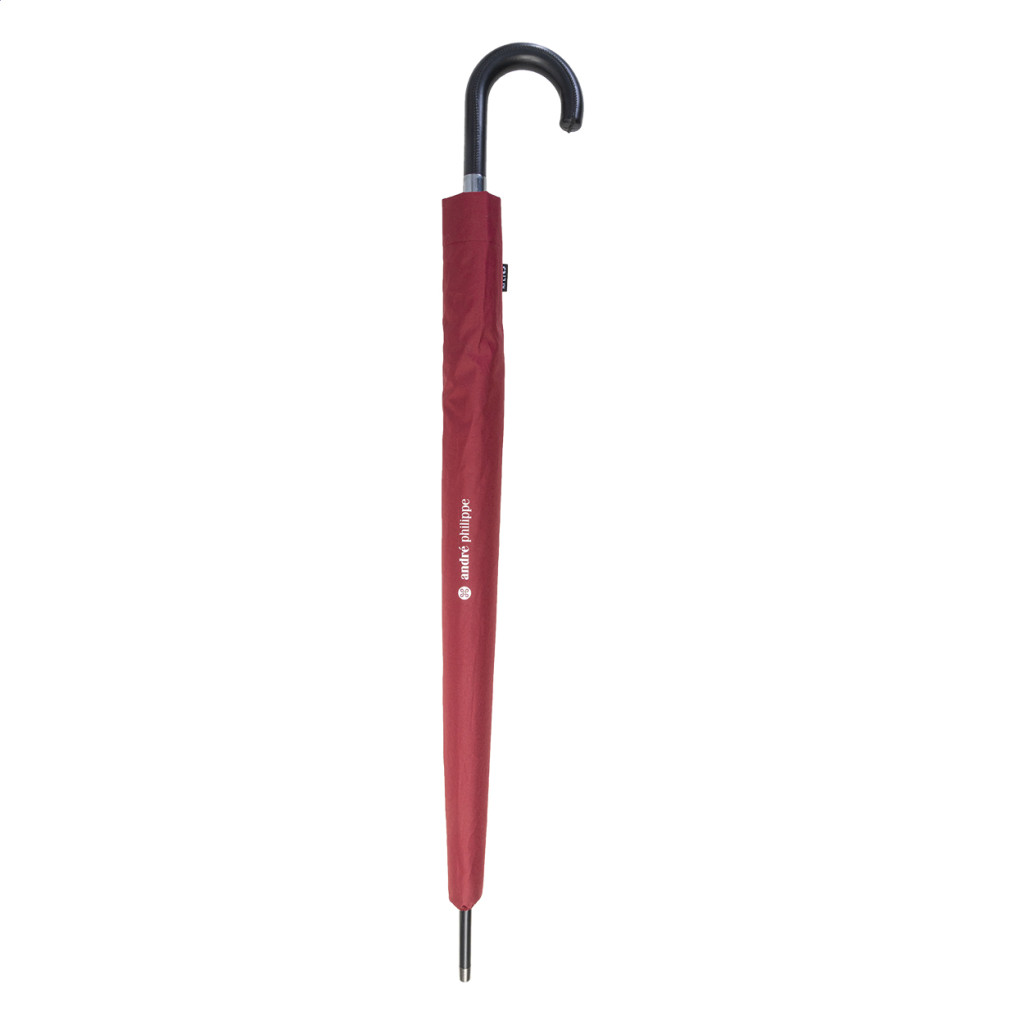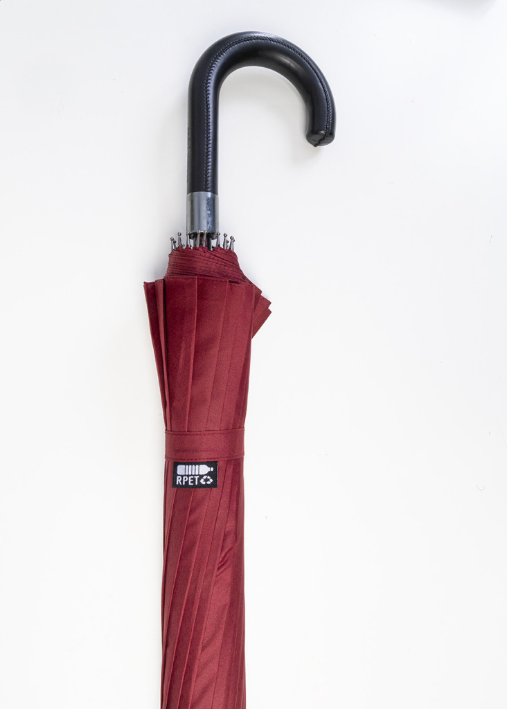 Nagy méretű, automata, szélálló esernyő 16 panellel, PU bőr fogantyúval, fém vázzal és üvegszálas bordákkal. 190T RPET pongee. Megkülönböztető RPET címkével. Márkás hordtáskában. André Philippe márkatermék.