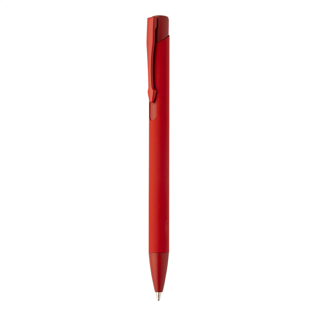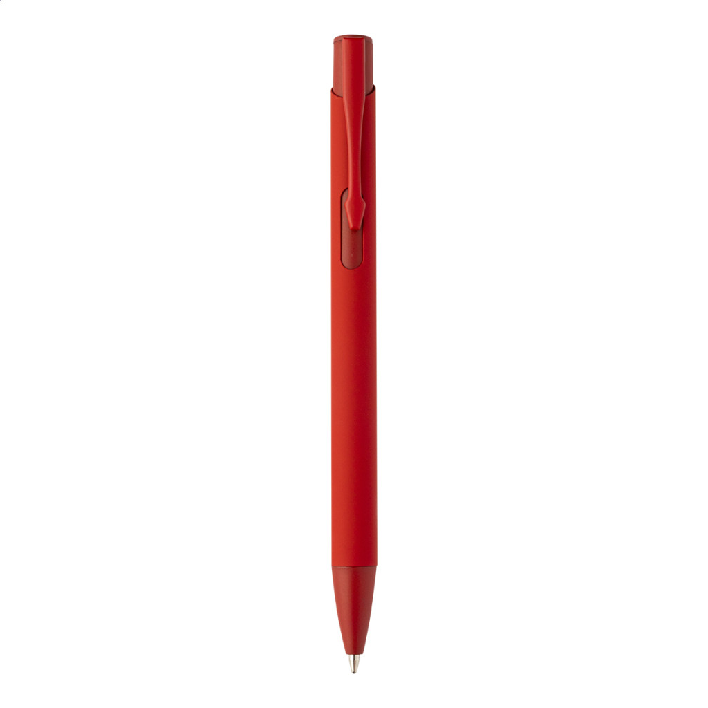 Újrahasznosított alumínium golyóstoll gumírozott testtel és hozzá illő színű részletekkel. Kék tollbetéttel.