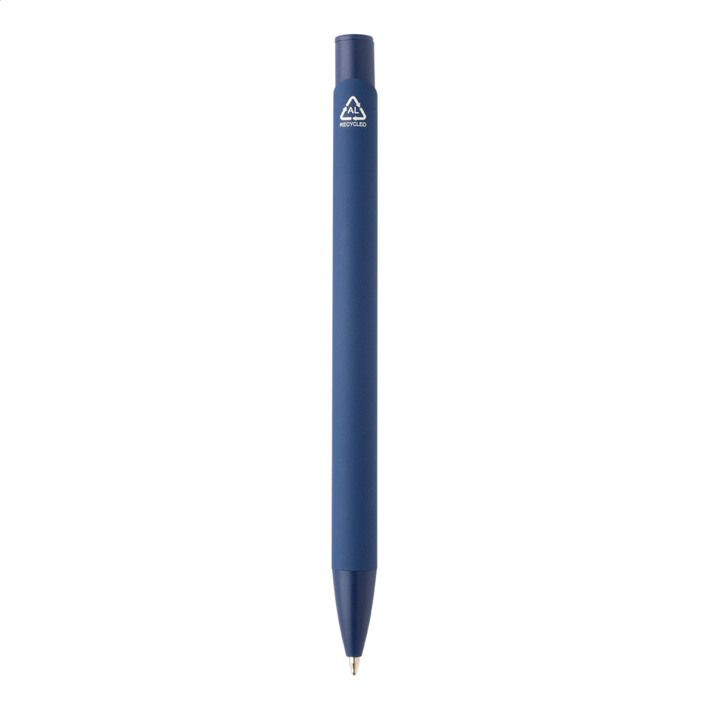 Újrahasznosított alumínium golyóstoll gumírozott testtel és hozzá illő színű részletekkel. Kék tollbetéttel.