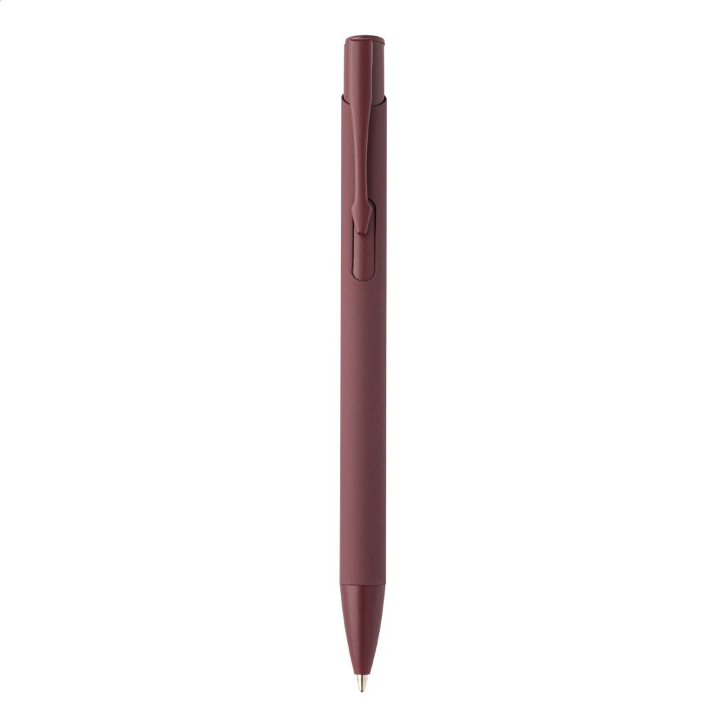 Újrahasznosított alumínium golyóstoll gumírozott testtel és hozzá illő színű részletekkel. Kék tollbetéttel.
