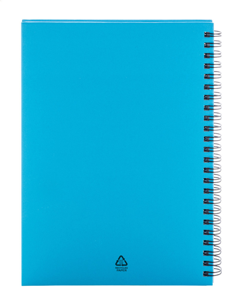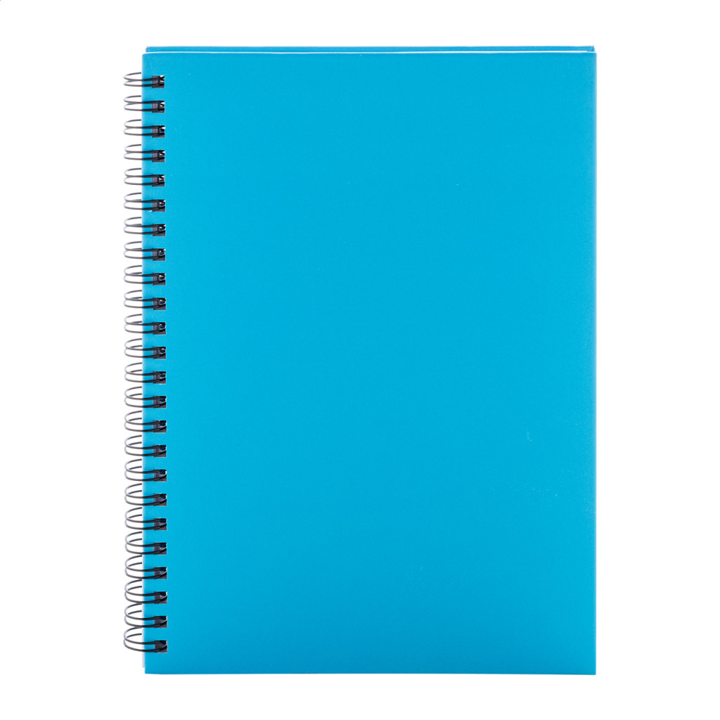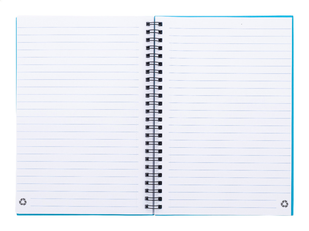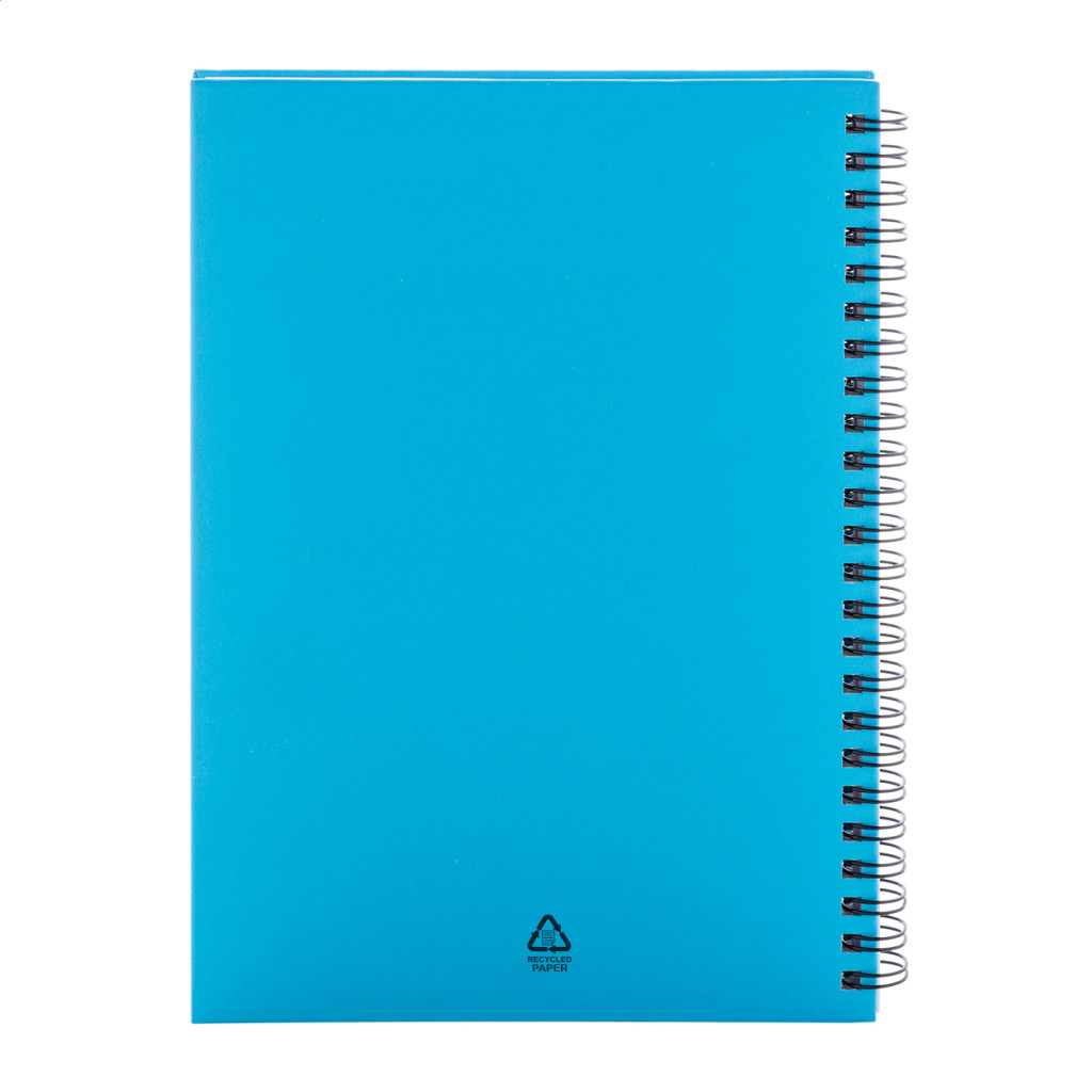 Újrahasznosított papír borítású spirál jegyzetfüzet 80 vonalas lappal, A5 méretű.