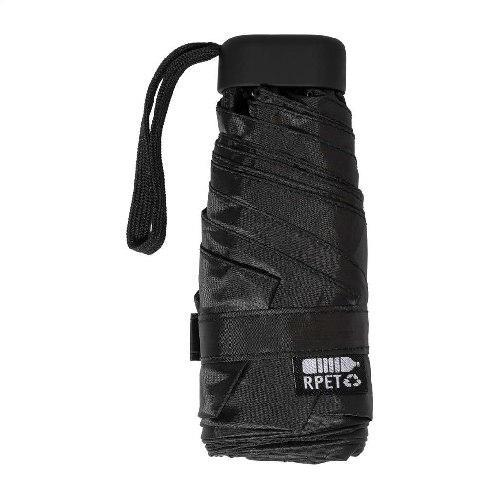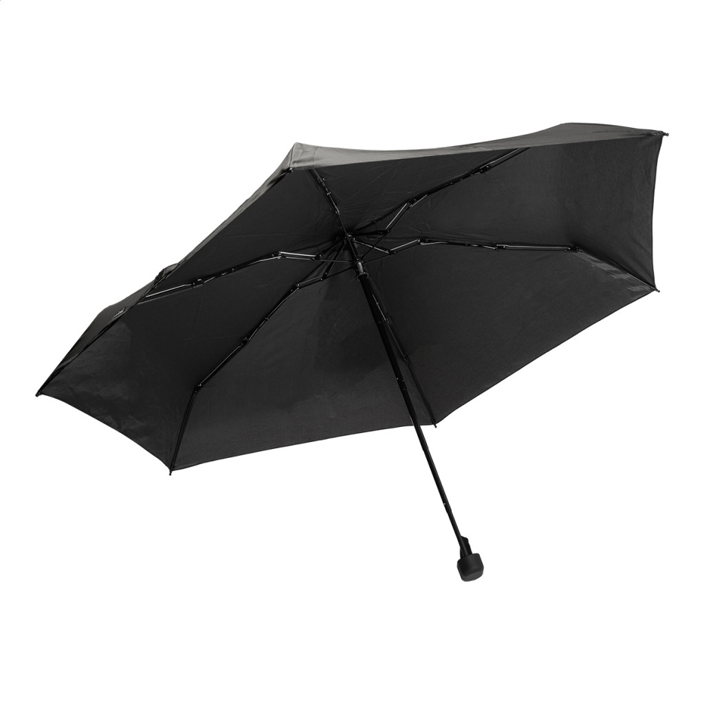 Manuális, szélálló, 3 részes, 6 paneles mini esernyő, színben hozzáillő tasakban és cipzáras EVA kemény tokban. Fém vázzal, üvegszálas bordákkal és kompakt, csuklópántos fogantyúval. 190T RPET pongee, megkülönböztető RPET címkével.