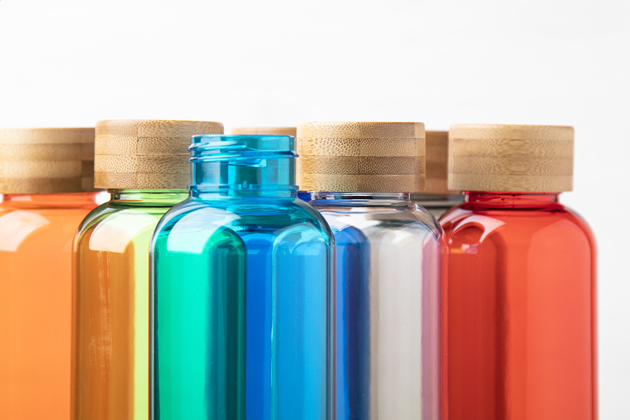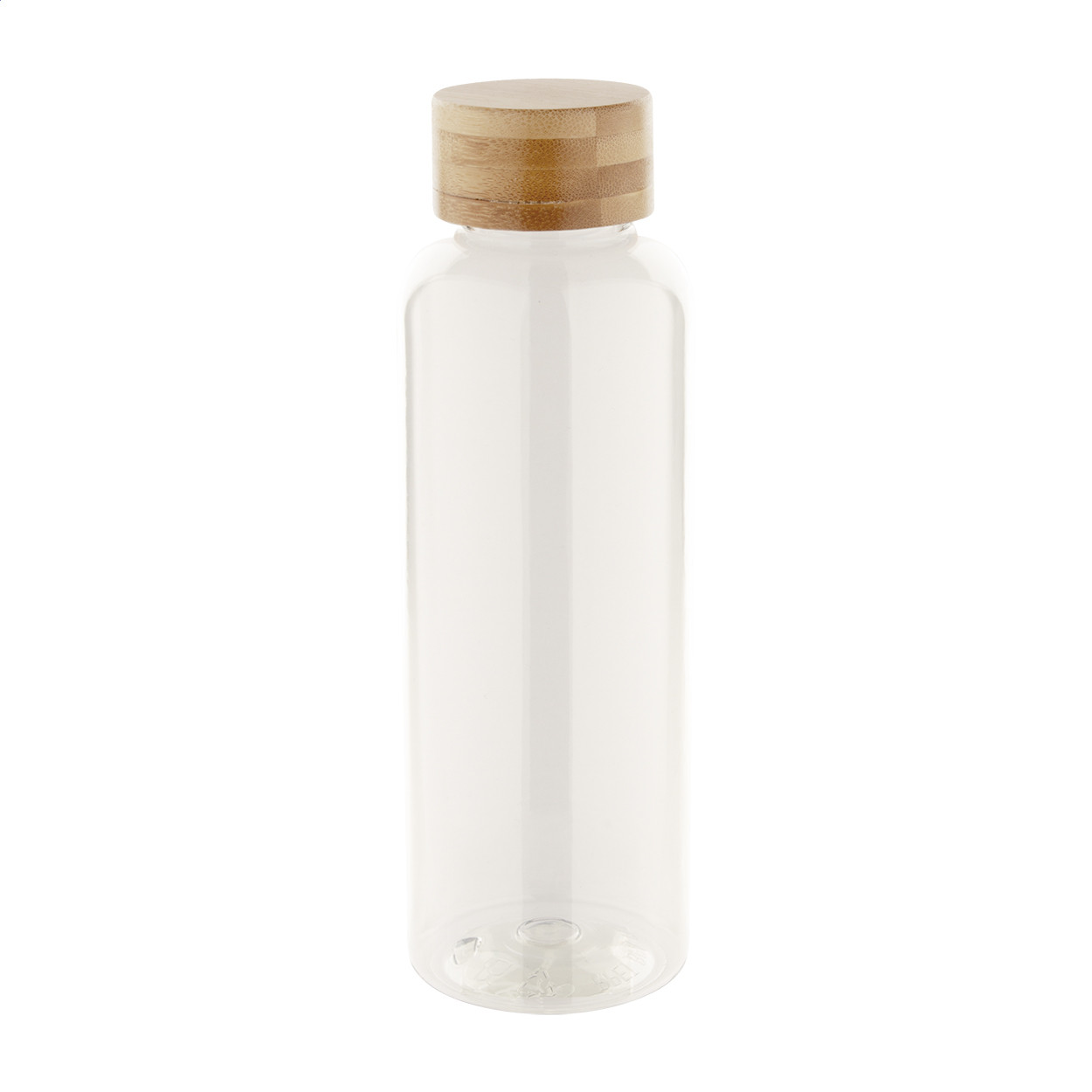 BPA-mentes RPET műanyag kulacs bambusz kupakkal, 500 ml. Nem alkalmas szénsavas italok tárolására.